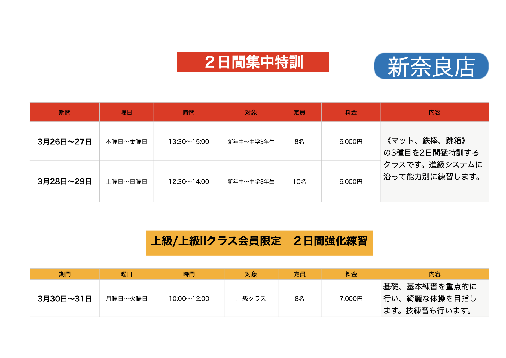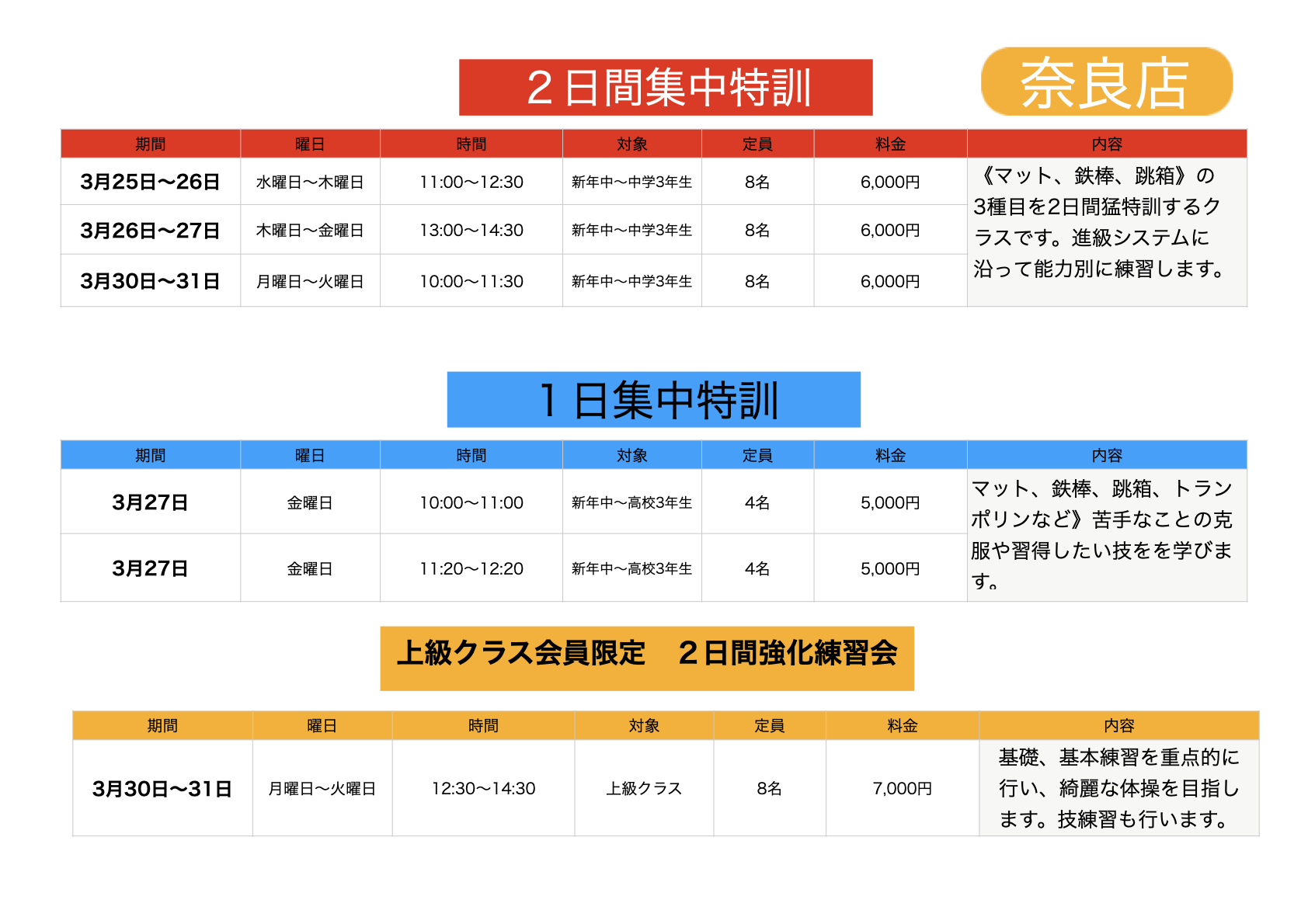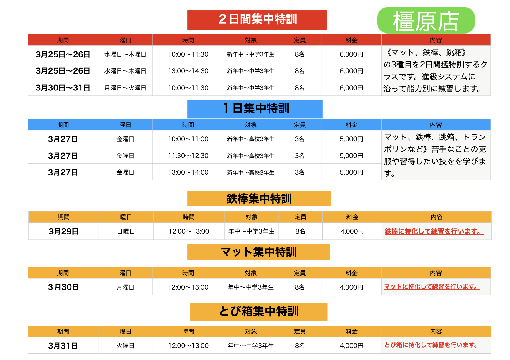 春の短期教室の日程が決まりました!!